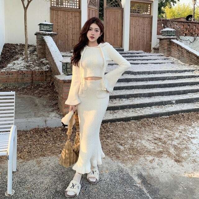 ニットセットアップ マーメイドスカート パーカー ガーリー E720