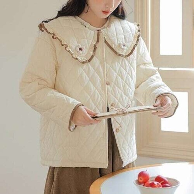 キルティングショートコート フラワーカラー フリル カジュアル E669